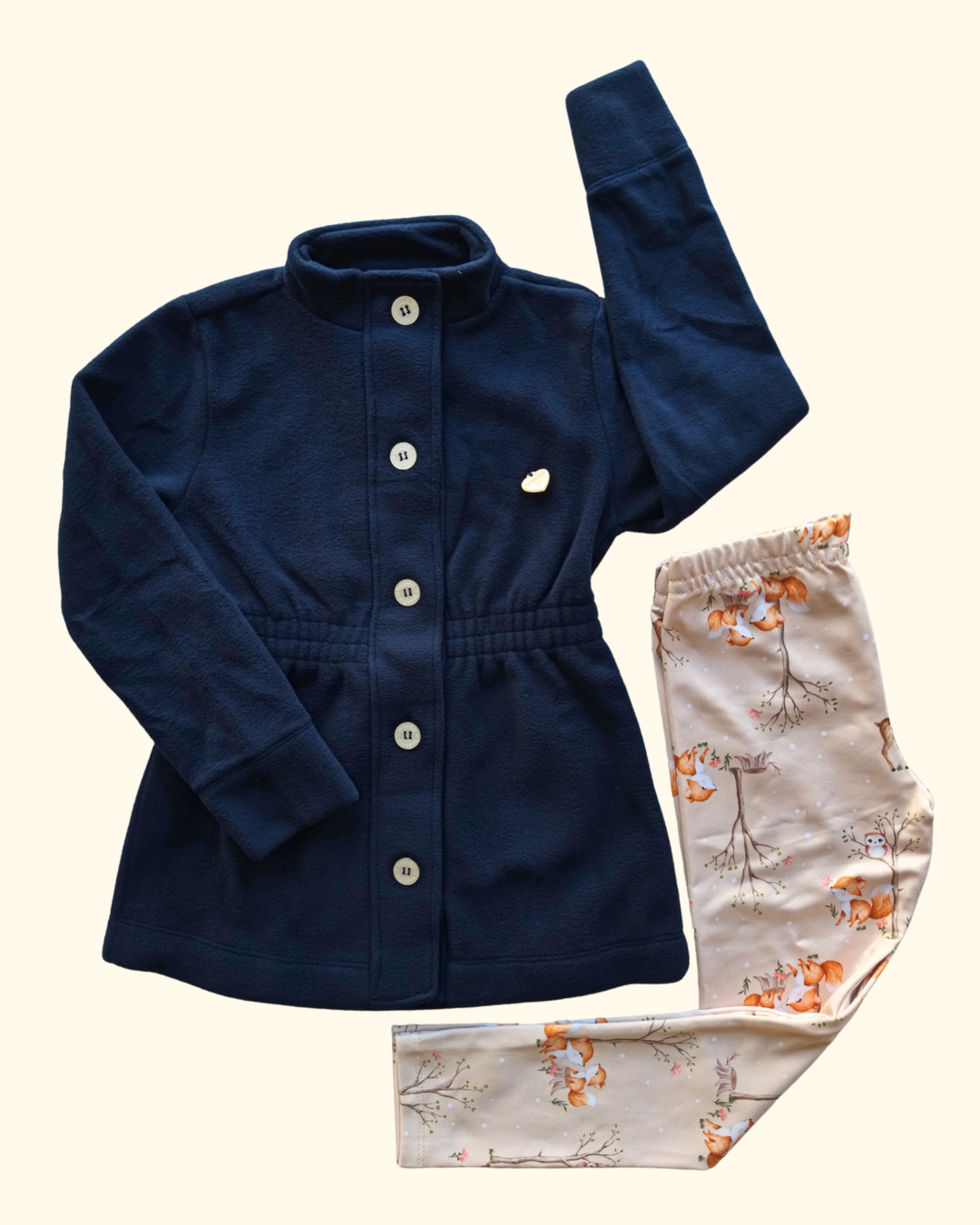 Este conjunto combina um casaco soft macio e super estiloso com botões, com uma calça legging peluciada com estampa fofa demais, oferecendo conforto térmico ideal para os dias mais fresquinhos. O casaco proporciona toque suave e aconchegante, enquanto a legging alia estilo e praticidade, garantindo liberdade de movimento para as crianças. Uma escolha perfeita para manter o bem-estar e o visual moderno em qualquer ocasião.