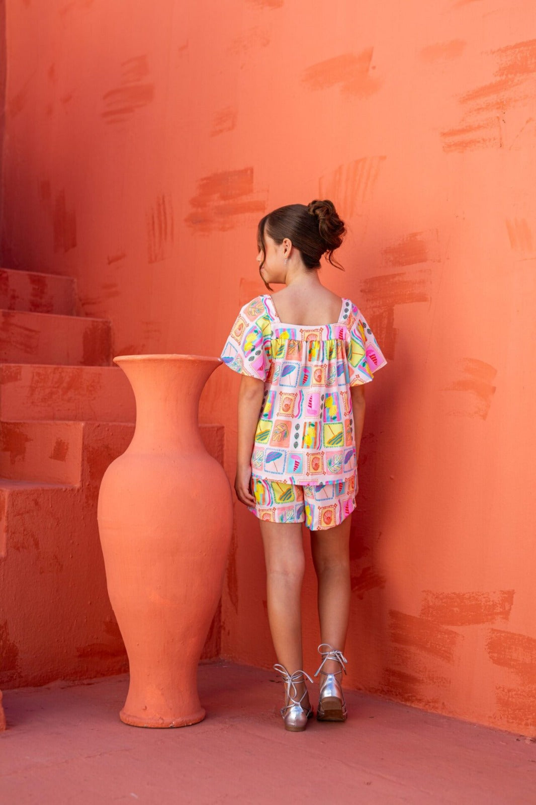 Conjunto Bata e Shorts- Rosa Estampa Praiana